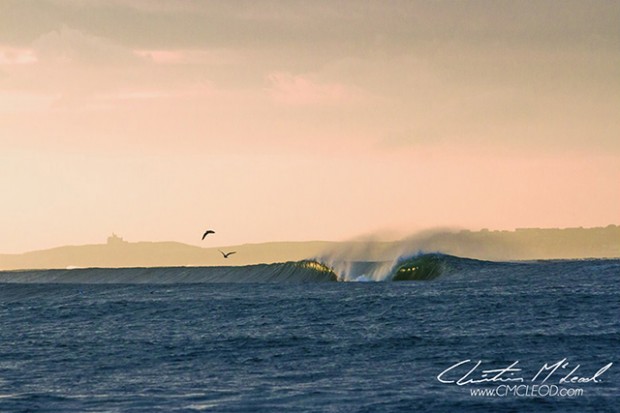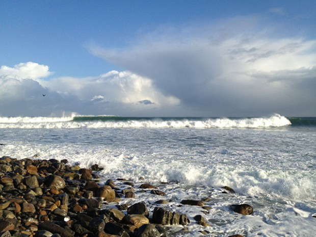 “I had to get out and get a picture of one of these rolling through just after low tide, leaving only two guys in for about 15 mins. Never seen it do this before…21/01/13.” Photo: Thomas Milsom
