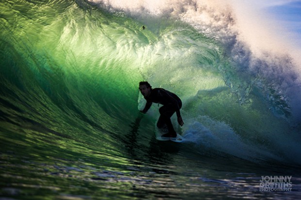 “Both coasts were firing this day, I headed down to Porthleven to find Joe Skinner pulling into this backlit keg.” Photo: Johnny Griffiths.