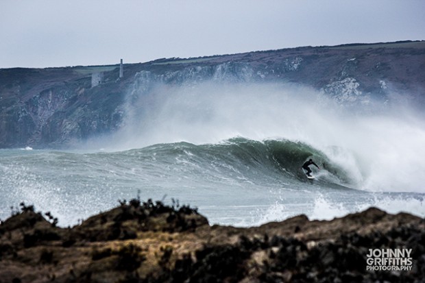 “A cold day in Cornwall. Out of many closeouts there were some that opened up enough to make the barrel.” Photo: Johnny Griffiths.