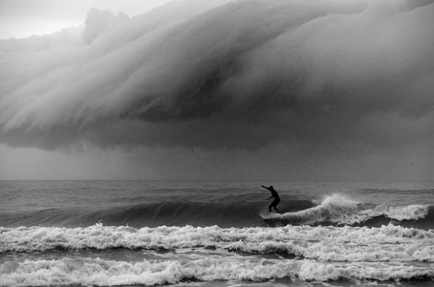 “Here´s a shot I took in Italy this march. Lone rider and thunderstorm.” Cloud porn’s yet another variable that can make a surf shot. Photo: Tom Datrip