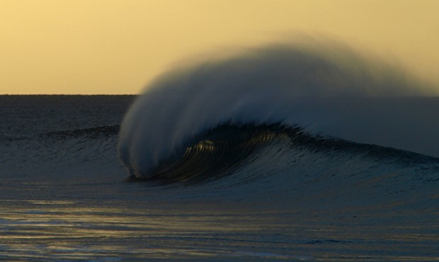 “I took this picture last winter in my island Fuerteventura a good day of waves. The rising sun lights up that perfect reef peak and only me and few friends to share it!” Photo: Alvaro Ródenas