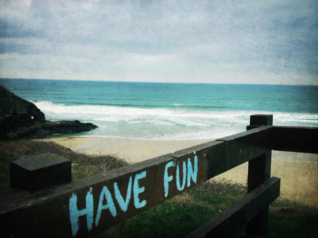 “Nothing fancy, but perfect words before the descent into cold waters at Perranporth, Cornwall.” Photo: Lucy Morris.