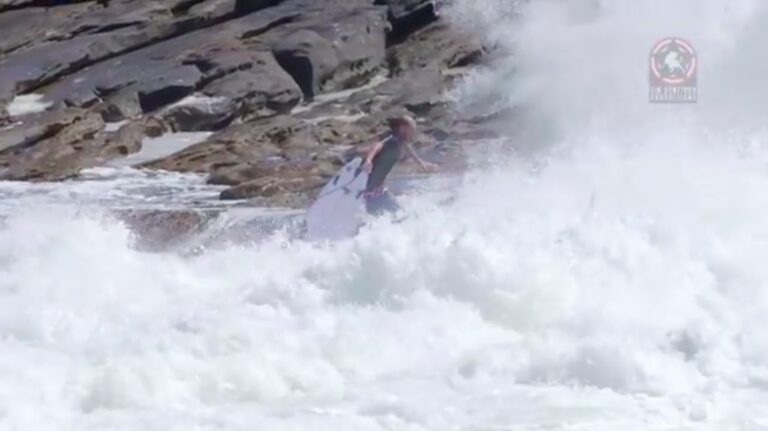 You may remember a not-entirely-serious article we published several days ago suggesting that Tyler Wright had ridden the longest wave ever — an 850km long wave, in fact — during a heat in the Australian Boardriders Battle. This was after an erroneous World Surf League headline claimed that Wright had injured herself on the rocks at Snapper, despite taking off hundreds of miles away at Cronulla, where the Boardriders Battle was being held. Her injuries — minor, thankfully — were actually sustained when she was washed into the Cronulla ocean pool and her leash became entangled in the chain fence surrounding it. So, anyway, this is the footage of Tyler caught between a rock and a hard place/taking a dip ’cause she couldn’t handle the heat/kept on a tight leash etc…