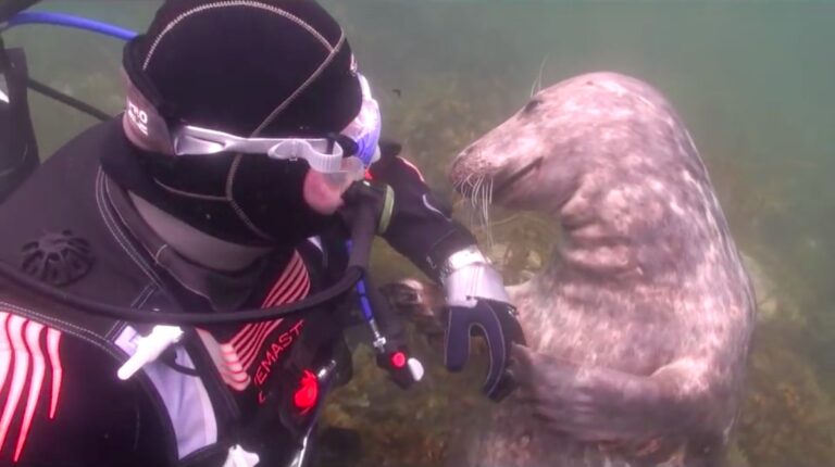 Puppy-dog seal and diver share intimate moment off the Cornish coast
