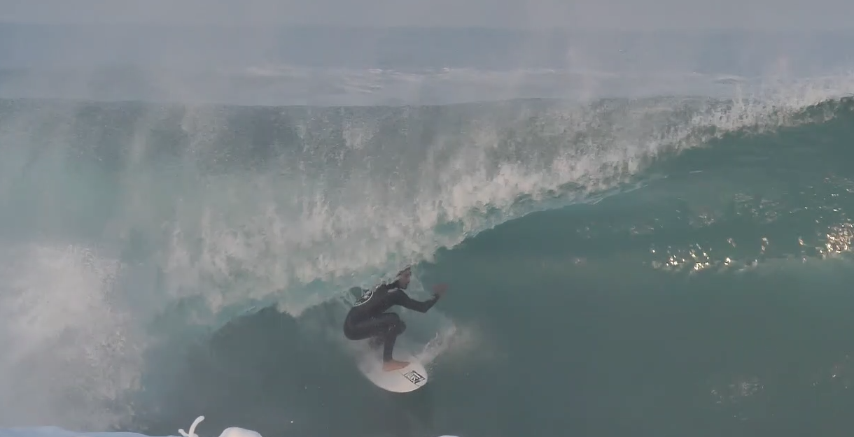 Yesterday morning at La Graviere, while the Quik Pro France was going down a couple hundred metres north, Adrien snagged this beastly late drop to earn wave of the day status amongst the freesurf scrum.