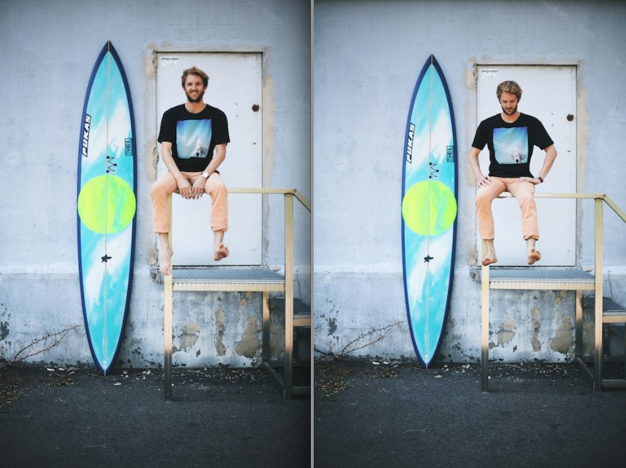 The board is a 10′ x 21 5/16″ x 3 3/4″, Twiggy model shaped by Pukas foam mower Mikel Agote, and weighs a whopping 12 kilos.