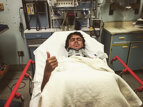 “So I’m alive and luckily no fractures in my neck or spine tons or muscle and other damage but nothing that will stop me from a quick recovery. I feel like jaws owes me one now. Really hope there’s a redemption swell before the year ends. Thanks to @kurtischongkee and the boys for keeping us safe. Till next time.“