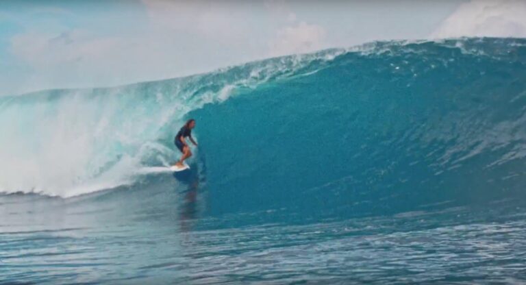 Pumping waves, colourful leprous wetsuits, and a rather good layback at 1:27