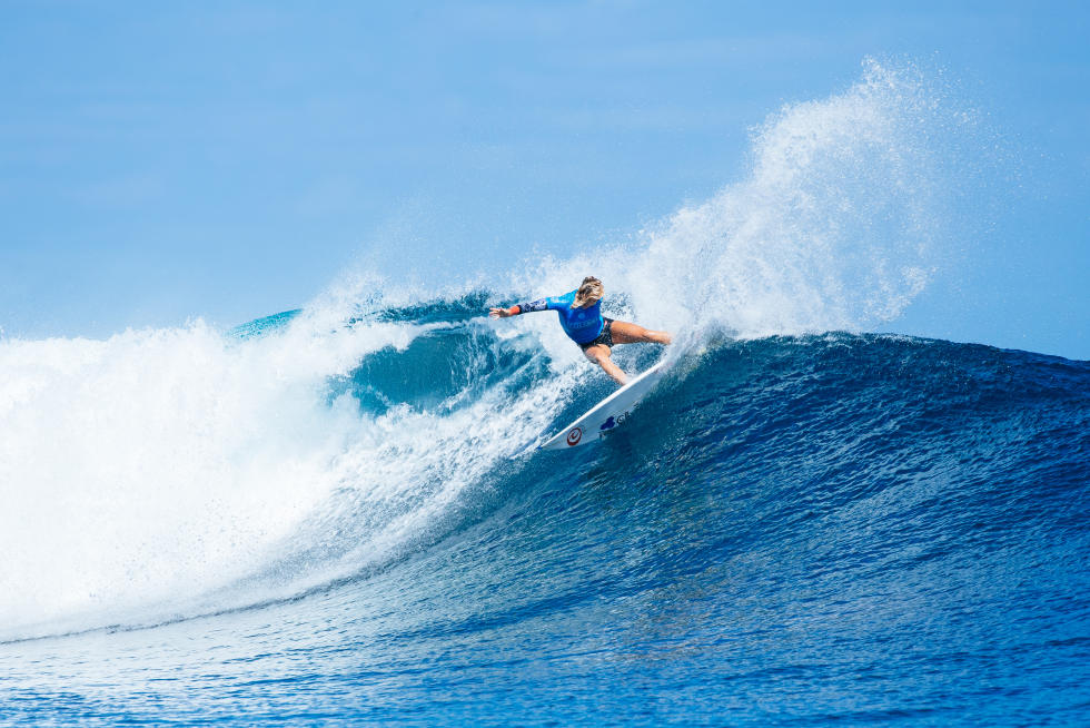 Yesterday at the Fiji Women’s Pro, the wildcard assaulted the lip with a vigour and technical mastery that put most of the women’s top 16 to shame, achieving a degree of torque that thrilled and flummoxed in equal measure. The hair on our feeble, embarrassed arms stood on end! Meanwhile, our minds battled furiously to make sense of it all. First she came from behind to topple world no. 1 Tyler Wright in the second round, then she made swift work of Stephanie Gilmore and Johanne Defay to book her spot in the quarters, all the while negotiating the famously unruly line-up with apparent ease. And how our spirits soared!