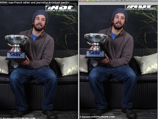 Anyway, I don’t have any pics in stock of the Summer of ’69 or Bryan Adams, I don’t have highlights from the 75-76 season (when Liverpool just pipped QPR for the title), or a copy of Orwell’s 1984. But I do have a pic of Archi from the ASP Europe ‘big yourself up’ awards night tother day in le Rock Food. There has been a recent flurry of awards nites in a vain attempt to fill the aching void left by the credit-crunched 2009 hiatus of the Surf Europe Awards.