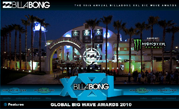 The tenth annual XXL Awards have shaped up as the most spectacular in the event’s history, thanks to an extraordinary year of El Nino-fueled swells spanning the Seven Seas. Over $130,000 in prizes will be distributed to the champions in an array of categories including the Ride of the Year, Billabong XXL Biggest Wave, Monster Paddle, Monster Tube and Surfline Overall Performance Awards. The top female surfers of the year will contend for the Billabong Girls Performance crown and the greatest mishaps of 2009/10 will be celebrated with the crowd-pleasing Verizon Wireless Wipeout of the Year Award.