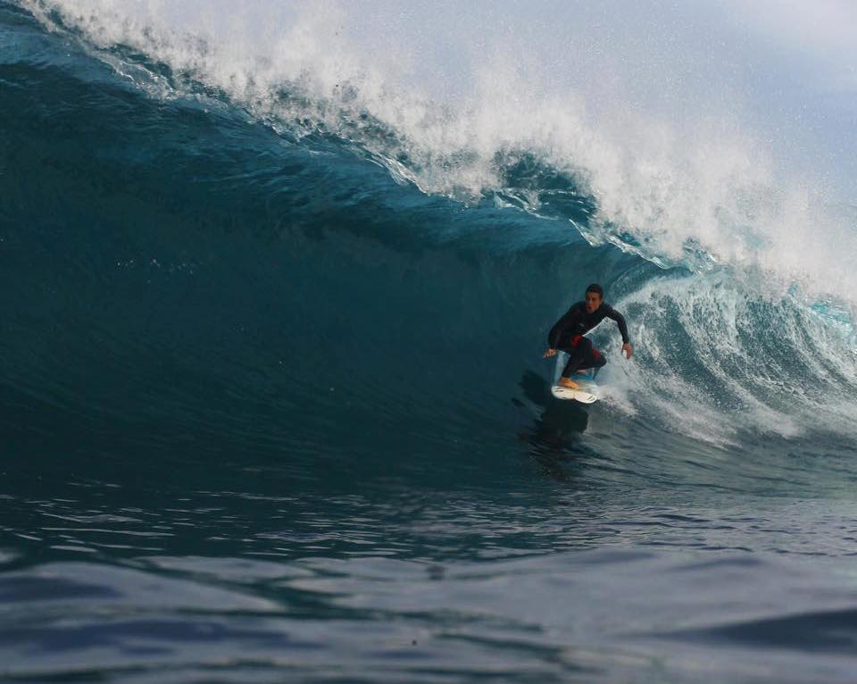 I was surfing at El Agujero, this really good righthand slab where I live on Gran Canaria. I’d been surfing for about an hour before the accident. The surf was so good, I got some good barrels and was super stoked, but maybe I got a little too exited.