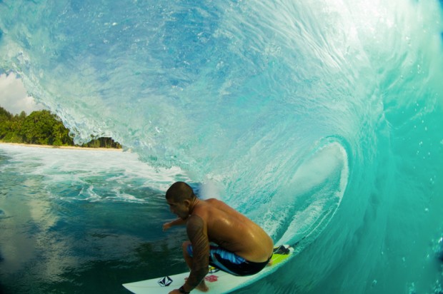 Ezekiel Lau is poolside at his villa in Bali as he acts out the greatest win of his career for me. “I could here them counting down – ten, nine – and I’m like, ‘RAAAAAH!” he yells. Tomorrow is the final of the World Junior Championships, which he will contest against Australian Jack Freestone. If all goes to plan it will be the next biggest win of his career but first it’s time relive an old favourite. “I’m paddling, my back is hurting and in my head I’m like ‘RAAAAAAH!’ Just screaming,” he says. He’s talking about an American National Titles a few years back in which he’d surfed all the way to the quarterfinals with a broken back. The injury was still a couple of weeks off being diagnosed and although he was in agony, there was too much at stake to give up. For one, if Zeke won the event he’d been told by his dad that he’d be allowed to grow his hair out for the first time in 15 years. Every Sunday for as long as Zeke could remember his pops sat him down right after he’d finished washing the car and shaved his head to sheen with a razor blade. The reasons for which were never properly explained. “He has a lot of things that he don’t really explain to me. ‘That’s how it is, you’re just gonna do it’,” he laughs, today. With ten seconds left on the clock and Zeke requiring only a three to progress the ocean had refused to come to the party. “I’m like is this really gonna happen? I can’t believe I’m gonna lose. I’d done everything I was supposed to do. That was when I was like: ‘No, I’m not accepting this. This is not happening.’ My back is sore, I got this far, there’s no way I’m not getting what I want,” he recalls. Zeke scratches into a piddly inside lump, taking off as the siren goes. There was more than a little pressure on him but choking is the furthest thing from his mind. “I got the wave and I was like, ‘UNLEASH!” He decimates the little burger, putting up five turns and stepping off onto the sand. There, he open his arms at the judges tower and screams, “GIMME THE SCORE!” For this, Zeke has climbs out of sundeck chair and stands in front of me with his giant wingspan opened at an imaginary judging tower. Skin ripples across his abs, contours of muscle push up through the tribal tattoo on his shoulder and, for a moment, I reflect that could indeed be a young Sunny Garcia reenacting the time he famously tried to rip down the judging scaffolding with ASP Men’s Tour manager, Renato Hickel in it. But on this occasion, Zeke gets the score, and he wins the contest. The young Hawaiian catches himself standing there. Cicadas beat in the dusk, a pool pump whirs in the background. He smiles sheepishly at me and returns to his seat, where he once again folds his arms in feeble attempt to conceal that gargantuan frame of his.