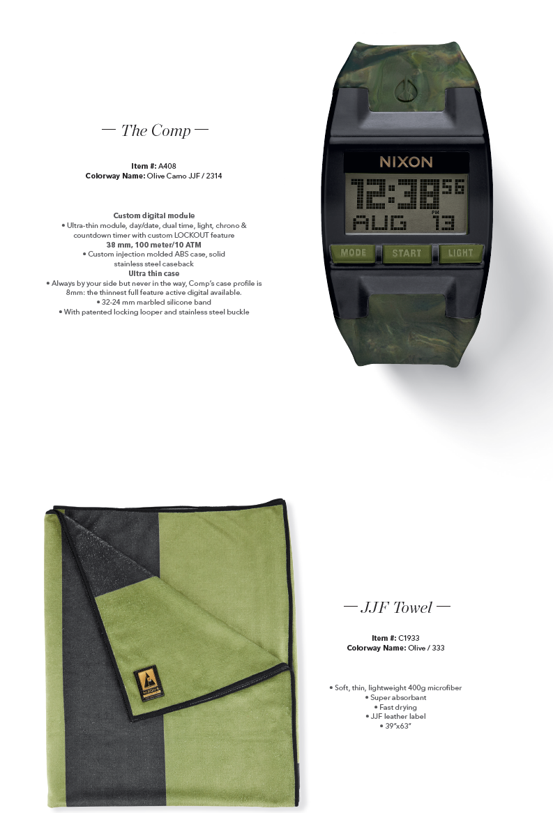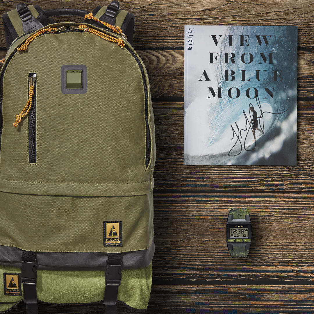Consisting of the JJF Camera Bag (dude’s a keen lensman), the Comp watch (slim design, as per John’s request), and the JJF towel, the collection bears the hallmarks of John John’s input in all its particulars. We have several of the set to give away, each one accompanied by a copy of Surf Europe’s recent View From A Blue Moon special edition, signed by the man himself.
