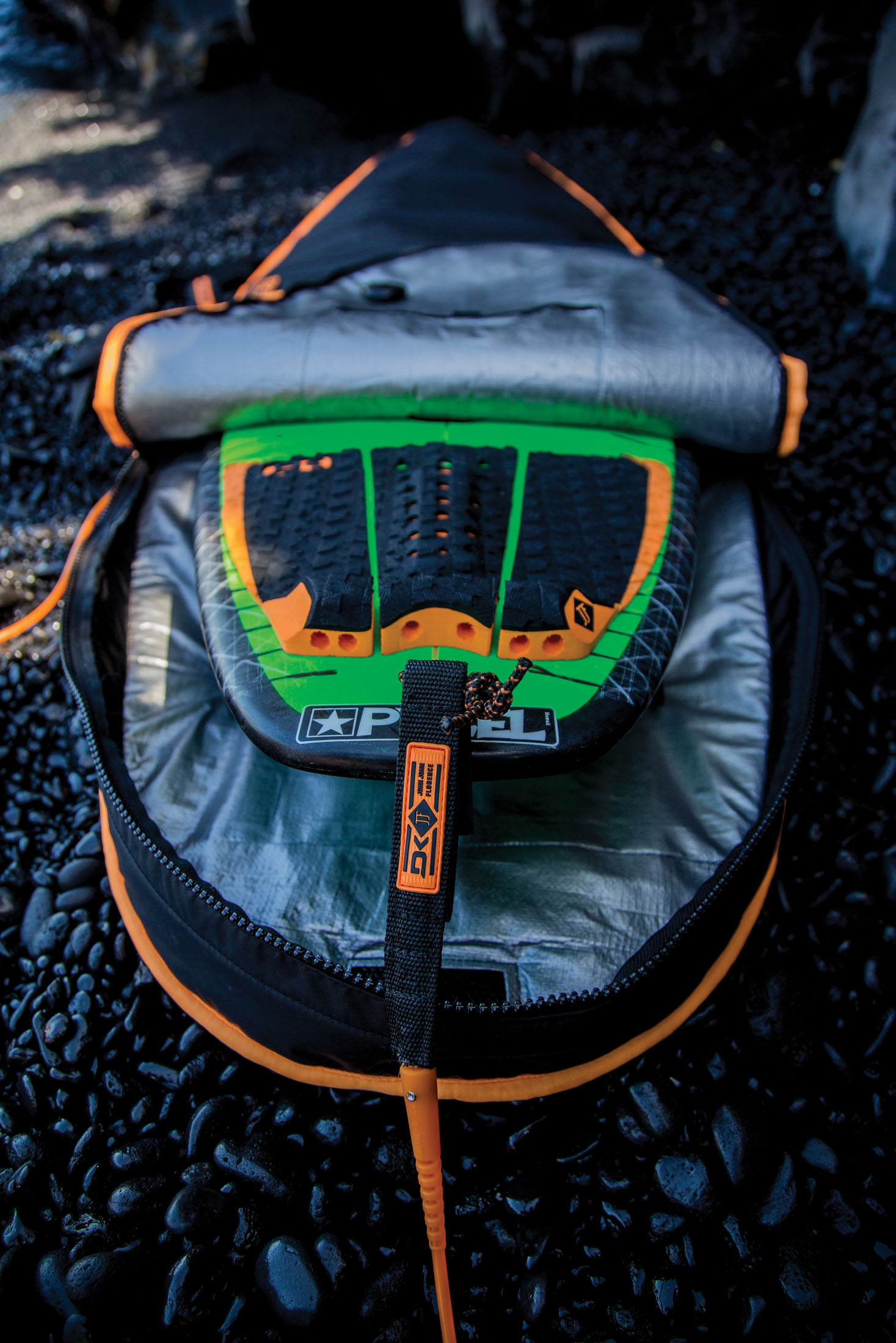 A range of bright, bold and robust leashes to attach yourself to your Pyzel (works on all boards), traction grippier than the flu and a boardbag to lovingly caress your board through the day to day traumas of shred life comprise an exhilarating equipment threesome.