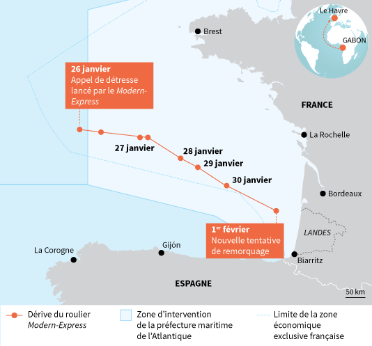 News websites around the world have been reporting the plight of stricken cargo vessel Modern Express, who five days after making an initial distress call, had been evacuated, was listing some 50 degrees, being battered by swells up to 5m and 80km/h winds, and had come within miles of the surfing beaches of the Landes coast.