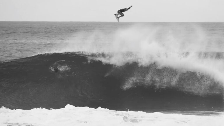 John John Florence In Black and White, with an alley oop that lingers in the air for an age...