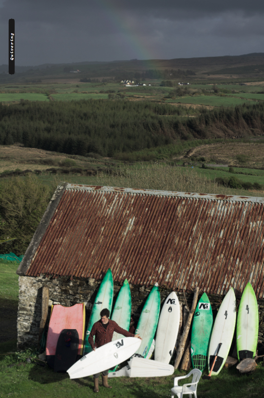 I think I got 10 new boards this winter. It would have been less but I am just so excited about riding new interesting boards I couldn’t help myself. In all my boards I am after a board that will flow into waves as easy as possible. So I am always trying things that will help that feeling of no restriction or drag. In heavy waves where you need to go as fast as you can I generally ride quads, but with a bit more experimenting I feel twin fins could be even better. I still ride thrusters for Aileens because it’s a wave where you’re trying to slow down and hold in the pocket. I‘ve always found riding big boards hard to really manoeuvre so I am trying to ride boards a bit smaller than usual. I have learned over the years that if you are really focused on your positioning, timing and wave selection you can use a much smaller board as long as it has good flow. For me one of the best feelings is when you slip into a heavy wave almost under the radar. That feeling of being in control in a hectic situation is for me the best. (left to right)
