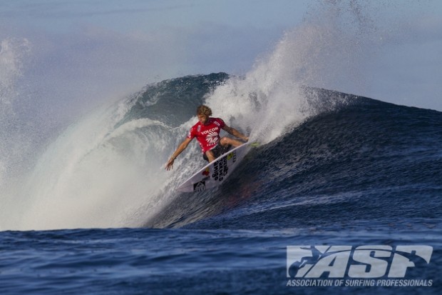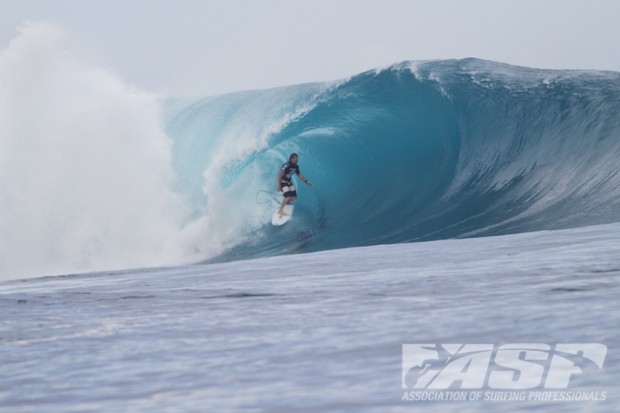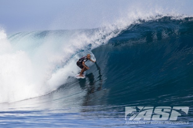 The Hawaiian veteran (qualified in 2005) will have surfed only a couple of times before putting back on the old contest vest, but seemed pretty confident about the strength of his ankle. Visibly at ease in this Fijian garden he has been visiting for nearly 15 years, Freddie P. dominates a risky Rd1 (Jordy and Seabass) thanks to his wave selection and impeccable reading of the tube, before falling on the Rd3 against an unstoppable Taj on the best waves. Let’s see if the ankle is also okay on maneuvers in Bali before potentially reach the final rounds in Tahiti (5th in 2010).