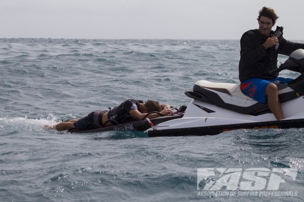 Bad boards (tails too thick) poor preparation, lack of experience … Watching Gabriel – 2nd in 2012 – and Adriano – rankings leader before Fiji – getting bounced out of this ocean can only spice up the second part of the season to come.