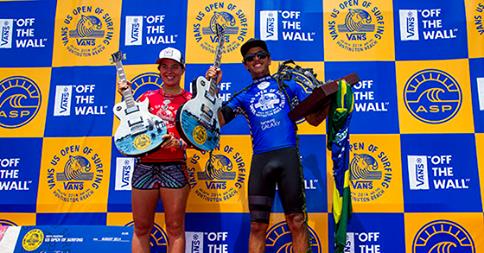 Tyler Wright and Filipe Toledo are crowned champions of the Vans US Open of Surfing. Image: ASP/Morris