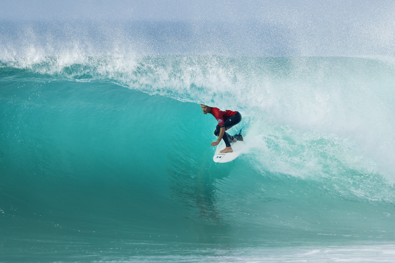 “I was trying to get barrelled, was conditions were amazing,” Zeitz said, “That (other) side of the draw was super gnarly, Gabriel and John, probably the heaviest guys on tour. I’m bummed I didn’t put up more of a fight, but it’s alright, I got a trophy. I was so stoked when I saw that mural of Andy Irons (on the WW2 bunker beneath the contest scaffold). Andy would still be smoking guys out here, he loved waves with power. Hopefully I’m doing him a bit proud today.”