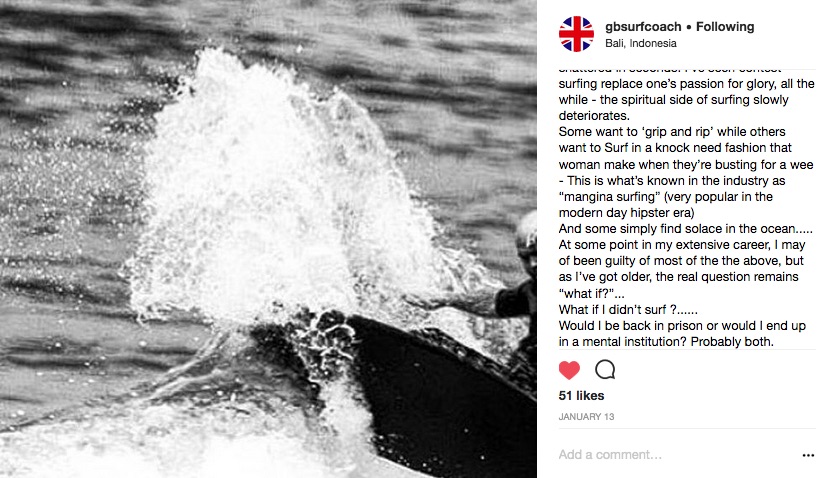 Being a labourer helps me understand surfing more. Most “surfers” are lost. I’m not. As I’ve gotten older I’ve learnt so much. I’ve just discovered what’s known in the industry as “the pyramid of balance”. And it’s a project that stops guys surfing just for the sake of it, but gives each surfer three balanced pastimes that all fit into surfing. For example, my three are: surfing; coaching and life-coaching; and mind-surfing. It takes the pressure off just getting out there for the hell of it — and is proven to actually improve your surfing. Surfing is all about what’s going on in our head!
