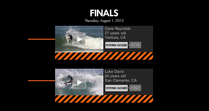 Voting for the quarter finals of the Hurley Pro video trials is now underway. Head over to the Hurley Pro site to watch competitors’ waves, then log in to Facebook and vote away!