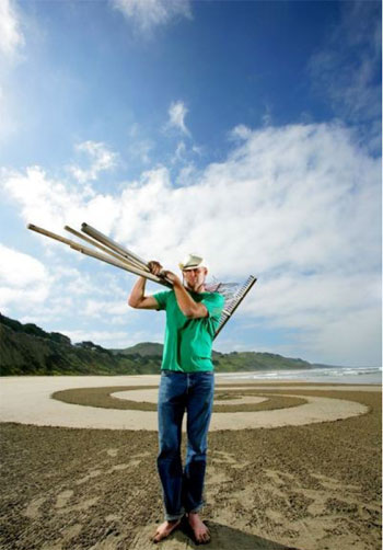 Mr Denevan discovered his talent for sand art when he idly picked up a stick and drew a 12ft long fish.