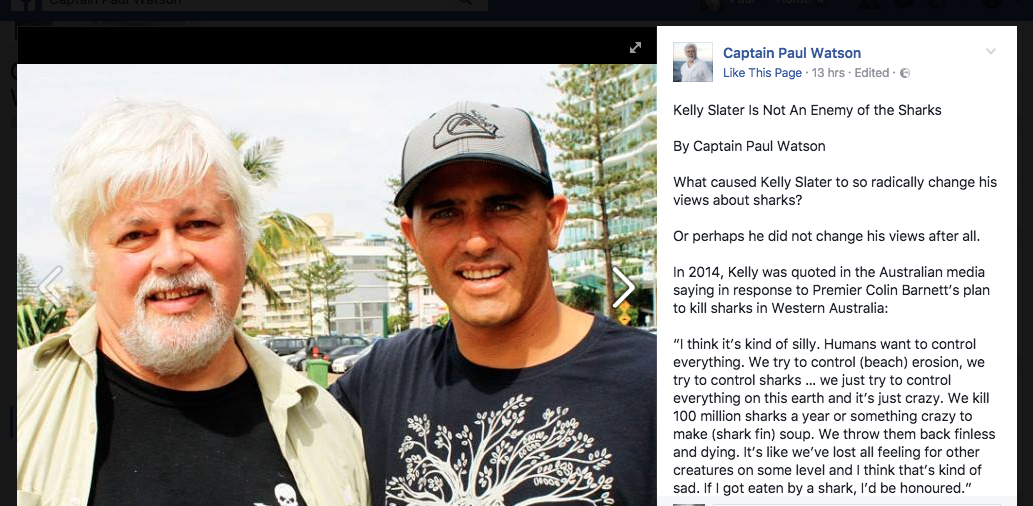Kelly is a compassionate man and he was reacting to the death of a young surfer and I believe that was his initial gut reaction to the tragedy. I don’t believe that this statement negates the incredible efforts Kelly made over the years to raise awareness of what we as a species are doing to destroy biodiversity in the sea.