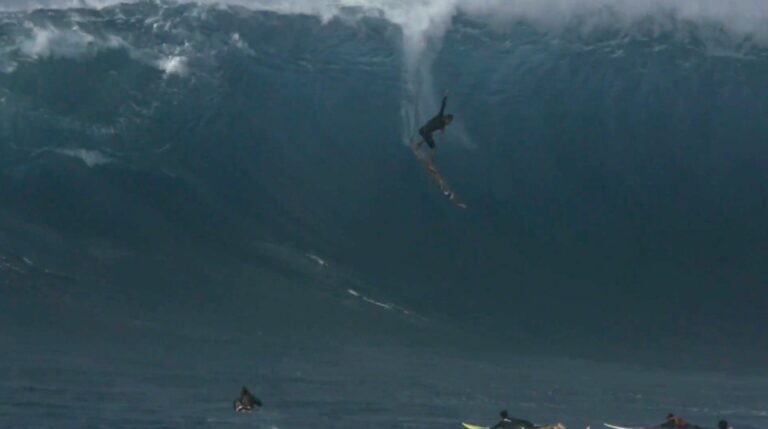 The real Sherlock Holmes would have swiftly deduced that “he” was in fact 11-time world champ and second greatest athlete ever to have lived, Kelly Slater, enjoying what PureDIGITALMaui, providers of the above clip, reckon was his first ever surf at Peahi. A quick Google search however turned up this old footage, leading us to suspect that he may have surfed there before but only with jet-powered assistance, which doesn’t really count anyway.