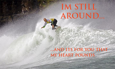 R Kelly Slater is in fact for now at least, still here. How do I know this? Coz I just saw his caramel scalp at Bourdaines.