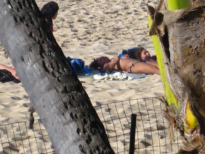 One of these chicks thought she was in France and had her boobies out on the beach at Pipeline, although she kept her hand cupping them at all times. Nevertheless, that shit won’t wash over here. She was told to cover them up by the lifeguard, who happened to be former Eddie winner Noah Johnson.