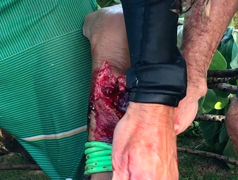 Federico H. Jaime, the surfer in question, sustained serious wounds first on his left arm, then on his left leg, but is believed to be “doing well and in recovery”. That was the assessment given by spindle-flipping Maui local Matt Meola, who arrived shortly after the attack and videoed the rescue operation on his iPhone. In the footage, which was posted on Meola’s Instagram, a gruesome and sizeable open wound can be seen as a second tourniquet is applied to the casualty’s arm, next to a green leash wrapped tightly around the limb. Scott Truden and an off-duty paramedic named Luke were among those who helped treat the wound, says Matt.