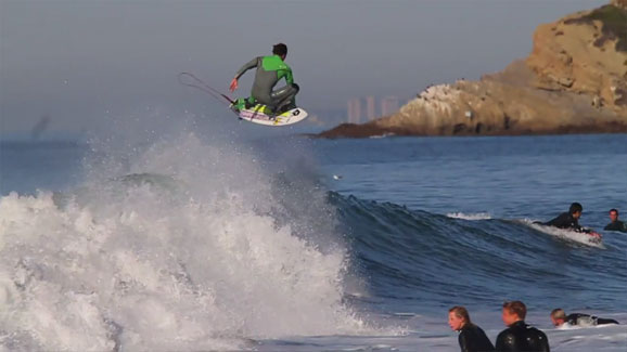 San Clemente’s Nate Yeomans shows you how to look sharp both in and out the water. Check the sweet butter smooth tweaked out frontside transition at 44 seconds.