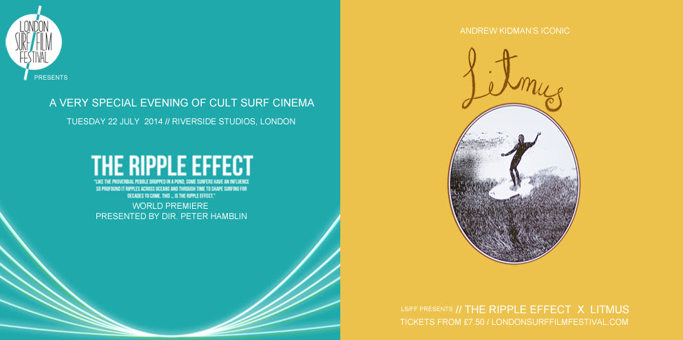 Tuesday 22nd July Riverside Studios will be hosting a very special evening of cult surf cinema. Bringing together a special big screen showing of Andrew Kidman’s iconic ‘Litmus’ with the world premiere of ‘The Ripple Effect’, presented on the night by the award-winning director Peter Hamblin.