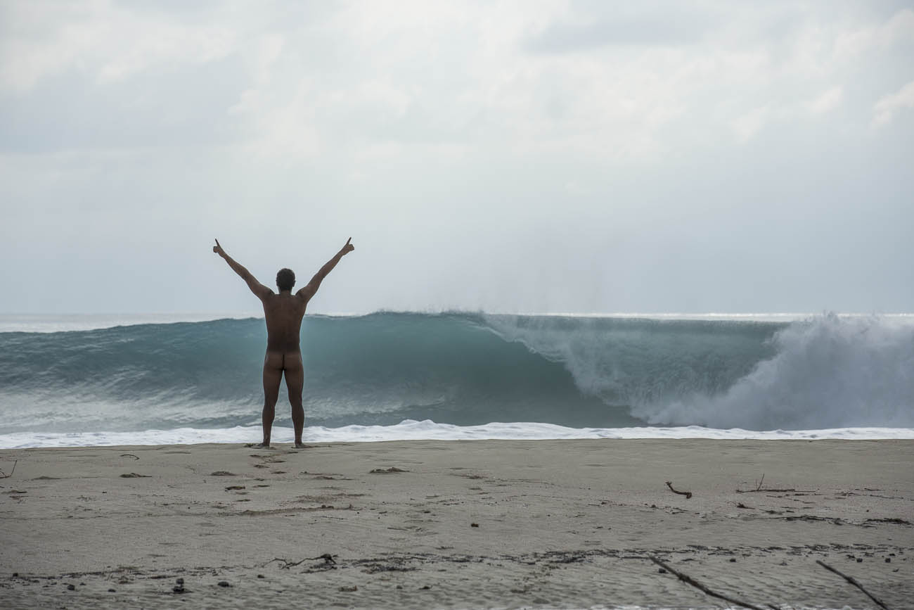 Here at Surf Europe we love nudity. We like skin. We like the soft refreshing gust of a warm, polite offshore breeze on a dangling ballbag. The only thing we like more than a naked man is a naked French man standing in front of one of the best righthand sand points we know about. So you can imagine our glee when Laurel’s recent dispatch from the Caribbean came in hot.