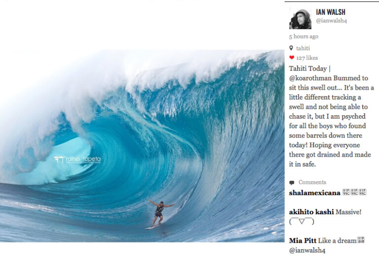 This is ten minutes of raw footage from Monday’s Teahupoo session. No captions, no editing, no interviews and all the better for it. It makes you feel like you were right there in the channel. And from the channel it looks like pure carnage. SUP’s, drop ins, boats going over the falls, five tow candidates per wave. And wait till the end, the last wave on the clip is Koa Rothman’s monster.