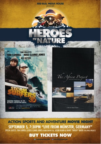 Red Bull’s Heroes by Nature kicks off this Thursday 5th Sept in Munster, Germany, with two epic surf flicks dedicated to the thrill of the tube ride.