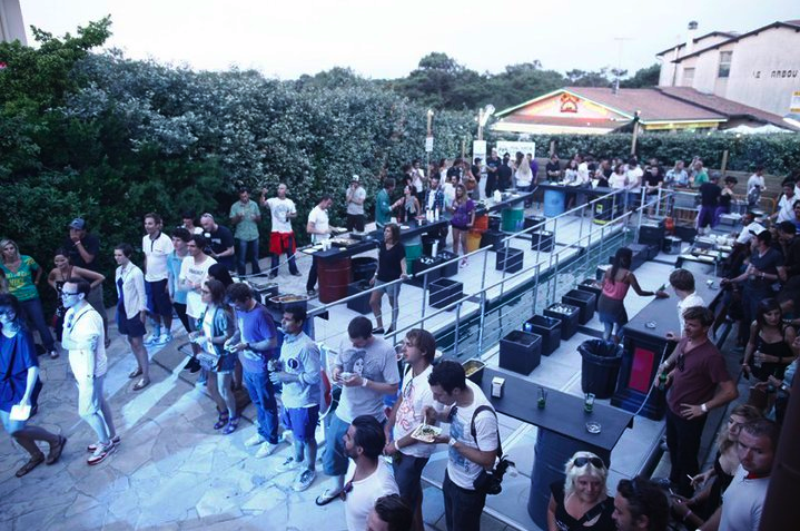 The house itself, located on the roundabout at la Centrale Hossegor is open to the public during the day and is the place to go to bro down with the teamriders, sign up for free surf lessons, win Nike6.0ID shoes, use free internet, sign up for free surfing photoshoots, photo galleries, exhibits, movies and tattoos. In the evening, the back of the house turned into a lavish garden party with The Drums performing their brand of semi-ironic 80’s pop on stage whilst floating on top of the pool, a bar served cool liquid refreshment and Neil from Nori turned his wrists over a hissing bar-b-q. Charly Martin showed up a bit late coz he was busy working out, and wasn’t too sure about the band, but unfortunately Elephant Man was fully booked. I thought they were pretty good myself. This is the one they opened up with:
