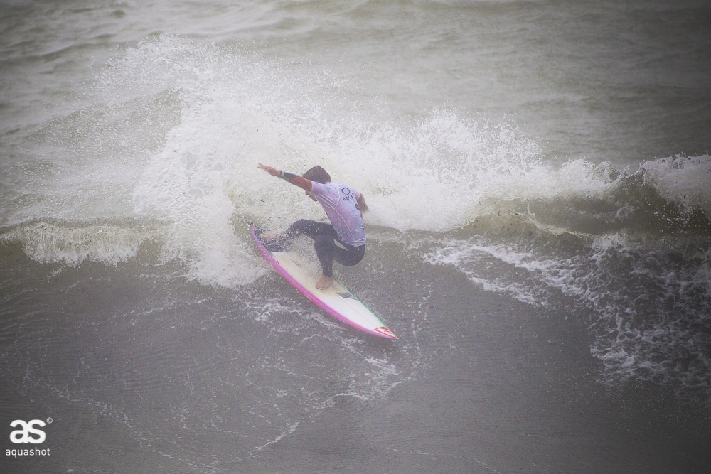 Despite challenging conditions giving organizers tricky logistics right from dawn, Spain’s finest surf shops took it all in their stride, posting impressive scores throughout the day. In between heavy rain squalls, big tidal swings and ever-changing sand bars, an impressive list of top surf talent put on a show to brighten up a grey day. Ethan Egiguiren of Escuela de Cantabria earned the high score of the event, lighting up a fast righthander for 9.17 to help secure his team’s place in the Spanish final. However, rivals Pukas pipped the Cantabrians in the Spanish final, before ultimately meeting their match in the form of the on-fire Frenchmen in the European Grand final, held in the high tide shorebreak on dusk.