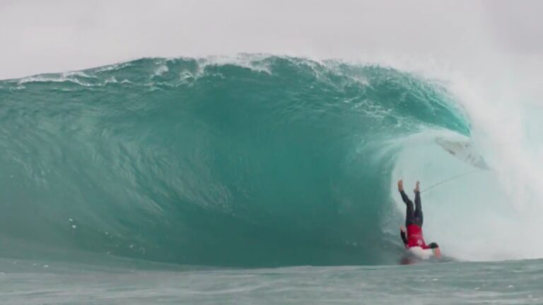 Well this is a flogging and a half. Pause around the 36 second mark and see if you can work out which limb is which. New South Wales charger Scott Dennis demonstrates the importance of regular and thorough stretching as a safeguard against injury, and records a very strong Wipeout of the Year contender in the process. More slab antics from Scott Dennis in this recent edit of his here.