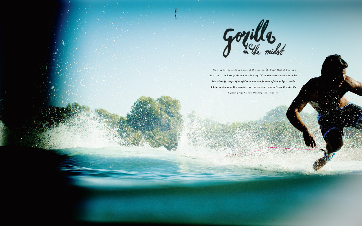 We’re talking scars and Michel Bourez has plenty. He’s got two big fleshy white crescents on his left shoulder, another slash of scar tissue on his right, and his broad Polynesian feet are a road map of intersecting scratches, tears and holes from reef dancing at home in Tahiti. He shows me his ankle and tells me there are still bits of reef in there and he’s going to lance it when he gets home and fossick around to find them. “The only good thing about flying on a plane is that it’s the only chance my cuts have to dry out.” He’s just landed in Fiji, a short jump across the Pacific pond, ready for the next event in a season he’s dominating, having won two events from four, the first wins of his career. The quiet Tahitian has come to life this year, and the idea of a Tahitian winning the world title suddenly isn’t as crazy as it might sound.