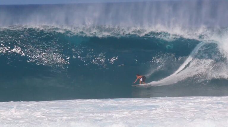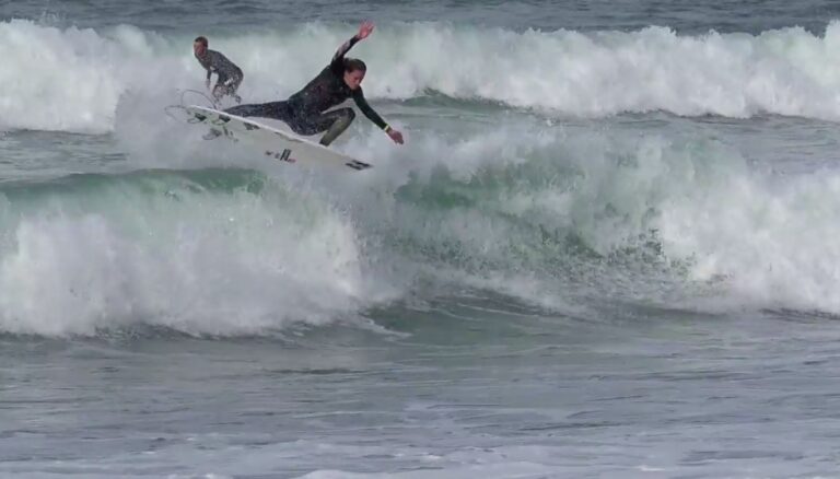 “I just got sent in by the lifeguard on a ski,” Jesse Adam said on Stab. “They said it was out behind the (Merewether) baths. Oh! My dad just did the two biggest backside reo’s! He’s out there on his own, what a psycho… Oh man, mum’s freaking.”