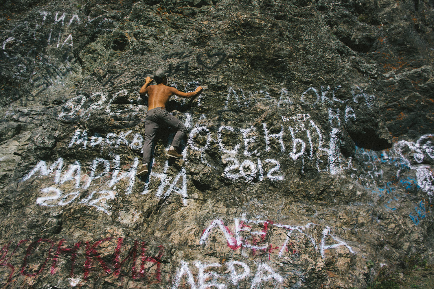 In the city, traffic clogged streets. Blocks of pre-fab concrete apartments lined roads. Other buildings looked like moon laboratories—pipes twisting all around their outside. Pillars of steam climbed into the sky. The whole city was a dystopia of vintage artifacts. Old VW buses zoomed past. On a mural painted across the face of a building, a five-story-tall stern-faced man held forth a shot of vodka. Below it, a bolded, two-story command: No! It would have passed as an urban art landmark in any American metropolis.