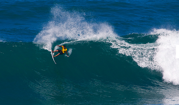 Joel Parkinson triumphed in the O’Neill World Cup of Surfing this morning, defeating Sunny, Mick and Dusty in a well contested final. Sunny Boy lead from the beginning with a 9.4 for a throaty baz across the Inside Bowl, but with time running out Parko’s steady nerve saw him earn the 6 he needed to take the ‘second jewel’ of the Vans Triple Crown. Sunny had been the one of the standouts of the day, as was Mick Fanning, who seemingly peaked a heat early. In his semi, he combo’d the field from the outset and seemed to get barreled every time his feet touched his wax, but despite a late rally in the final, had to settle for 3rd.