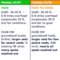 Stand by for the Eddie in memory of Quiksilver which may well run, if indeed it isn’t too onshore, too west, or too big.