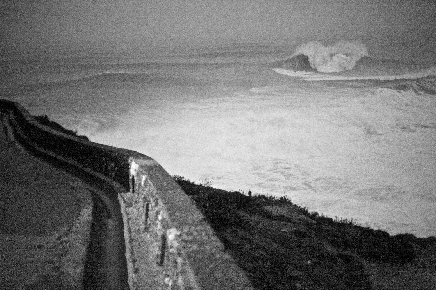 A moody grainy vibe on a too bumpy/not really happening arena. Today at Nazaré at least, Guinness World Record hymens remain unbroken.