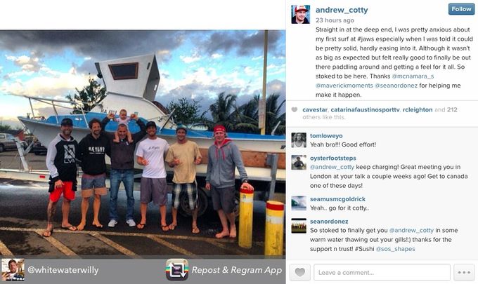 Big-wave specialist Andrew Cotton is over in Hawaii at the moment, and just surfed Jaws for the first time, but he genuinely does have to supplement what little he earns from surfing by doing “proper jobs.” A lifeguard on the beaches of Devon over the summer months, Cotty is also a first-rate plumber.