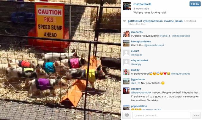 There is evidence to suggest, however, that Wilky has also developed an (unhealthy?) addiction to gambling on pig races.